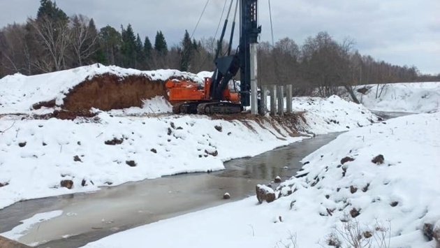 В настоящее время подрядчик уже демонтировал старый деревянный мост и рабочие начали создавать свайное основание для устройства опор.