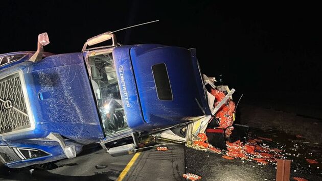 Инцидент произошел на шоссе I-90. На фотографиях с места происшествия виден лежачий на боку грузовик и большое количество разбросанных по дороге и обочине картонных коробок с битыми яйцами. В результате ДТП движение по шоссе пришлось перекрыть на время уборки.