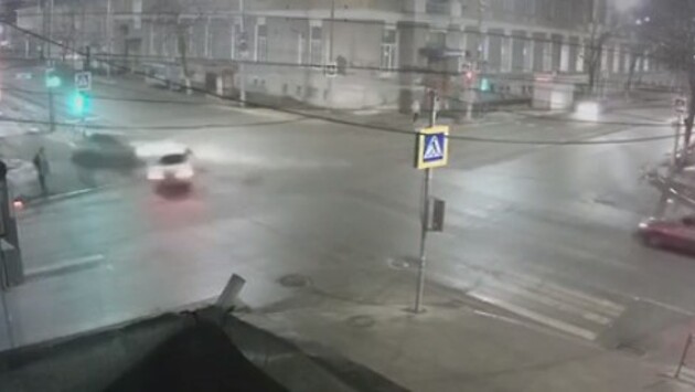 На них видно, как две машины сталкиваются сразу после пересечения сигналов светофора. Они обе вылетели на тротуар, но одну из них закружило и она сбила двух пешеходов. В настоящее время по данному факту проводится проверка.