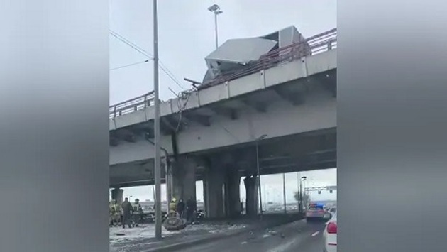Как сообщает Telegram-канал «Mash на Мойке», сохраняется угроза обрушения фуры вниз. На месте работают экстренные службы и полиция.