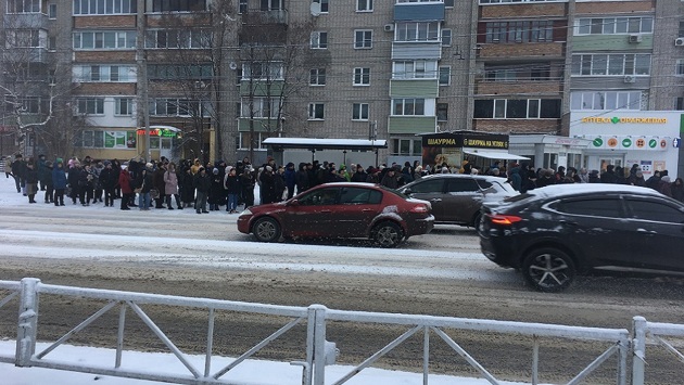 В Рязани из-за пробок 6 марта на остановке в Кальном собрались десятки людей