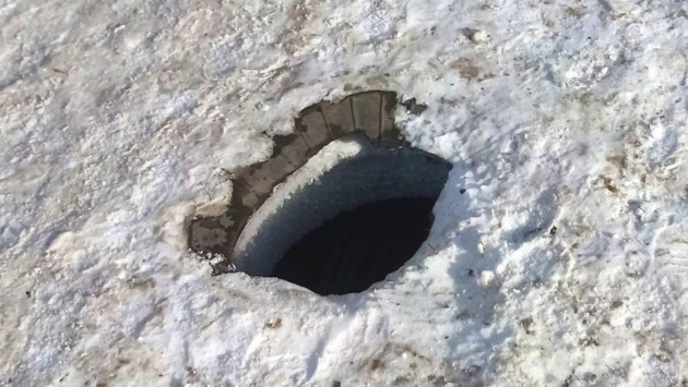 «Ждет свою жертву. Берегите себя»,— подписала саратовчанка фото открытого иеле заметного колодца под слоем снега.