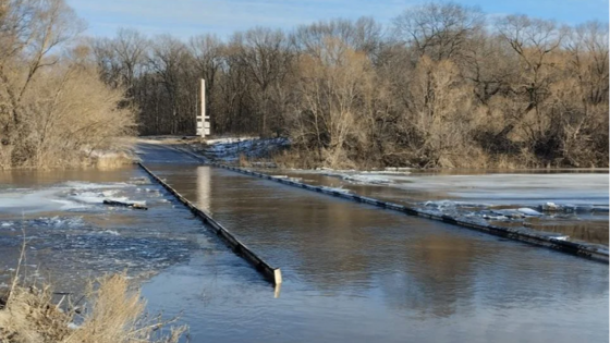«Врезультате подъема уровня воды вреке Хопер произошел перелив воды через низководный автомобильный мост врайоне населенного пункта Нестеровка иврайоне хутора Ободной, который соединяет Ртищевский иТурковский районы,— информируют чиновники. —Вцелях обеспечения безопасности граждан иавтотранспорта движение помосту врайоне села Нестеровка перекрыто для всех видов транспорта ссегодняшнего дня, 11марта, достабилизации паводковой обстановки натерритории Ртищевского муниципального района впериод весеннего половодья».