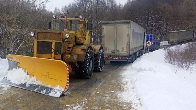 В субботу, 11 марта, в районе 11 утра местные жители не смогли проехать по дороге, так как её заняли две гружёные фуры из Турции.