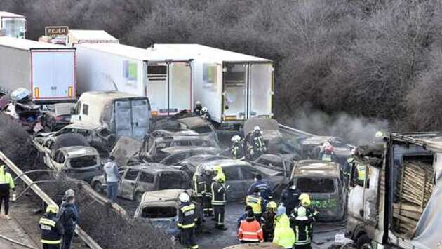 В Венгрии произошло массовое ДТП с участием около 40 автомобилей, сообщает Associated Press. Инцидент произошел 11 марта на шоссе M1 в 25 километрах к западу от Будапешта. В результате аварии 19 автомобилей загорелись, 36 человек получили травмы. 13 человек госпитализировали с серьезными травмами, одного - в тяжелом состоянии. По сведениям венгерской компании-оператора автомагистралей, причиной аварии могла послужить плохая видимость из-за пыльной бури. На место происшествия прибыли четыре спасательных вертолета, а также пожарно-спасательные команды из близлежащих городов. Движение в обоих направлениях трассы M1 было остановлено до конца дня. Ранее ГИБДД сообщила причину ДТП с 21 машиной в Саратовской области.