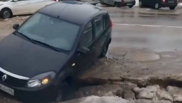 В Костроме настолько размыло дорогу, что она провалилась вместе с машинами, узнал KOSTROMA.TODAY. Как рассказали горожане, ЧП произошло на улице Сутырина. Ранее на участке проводили раскопки, а накануне работы завершили. Судя по кадрам, правый бок одной машины полностью попал в яму. Очевидцы рассказали, что водитель с трудом вытащил автомобиль.