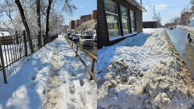 Жители Владивостока жалуются на засыпанные снегом тротуары, сообщает PRIMPRESS. В частности, такая проблема наблюдается на Эгершельде. Информация об этом и фото были опубликованы в Telegram-канале News.vl.
