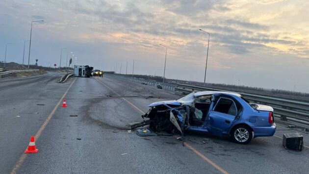 - 30-летний водитель, управляя автомобилем Hyundai Accent, выехал на полосу встречного движения, где столкнулся с грузовиком MAN, за рулем которого был 61-летний мужчина. В результате ДТП большегруз перевернулся, - говорится в сообщении.