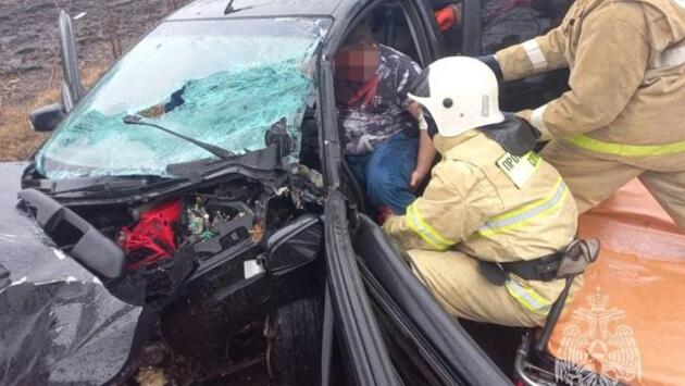 В Курской области пожарные деблокировали водителя из искореженного авто после ДТП