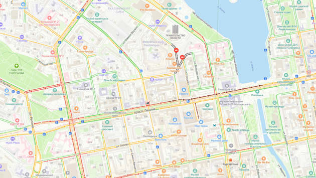 По данным сервиса Яндекс. Карты, на проспекте Ленина наблюдаются 10-балльные пробки. Машины стоят от Малышева до Маршала Жукова в сторону площади Коммунаров.