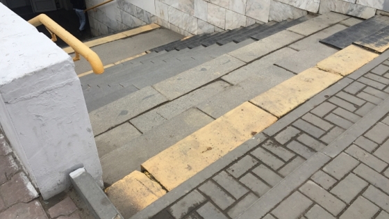 В пресс-службе мэрии пояснили, что по ПДД обустройство пешеходных переходов на одном уровне с проезжей частью на этом участке невозможно. Чтобы сделать переход доступным для инвалидов, нужна реконструкция.