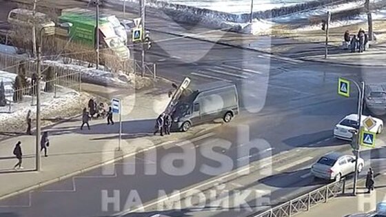 В Петербурге микроавтобус протаранил остановку с людьми и попал на видео