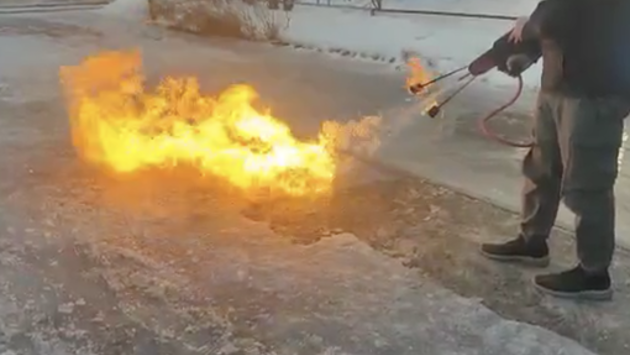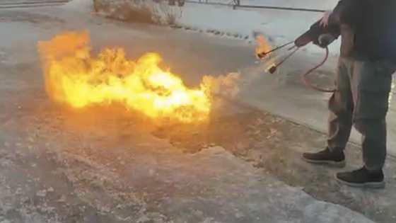 Новосибирские депутаты применили огнемет для борьбы с гололедицей на дороге