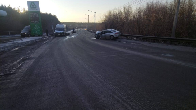 По данным главка полиции, водитель Chevrolet Cruze не справился с управлением и выехал на полосу встречного движения. Автомобиль столкнулся с микроавтобусом "Луидор", который перевозил работников предприятия.
