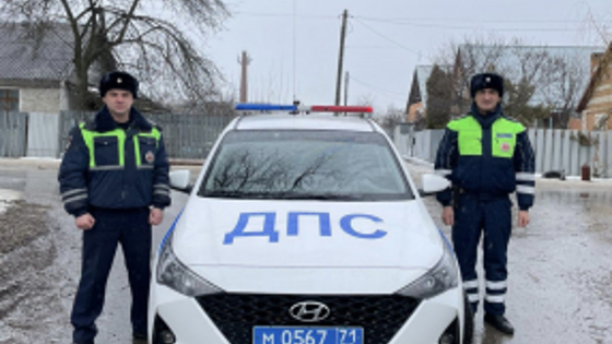 В сильный снегопад инспекторы ДПС ОГИБДД по Киреевскому району Тульской области оказали помощь иногороднему водителю большегруза