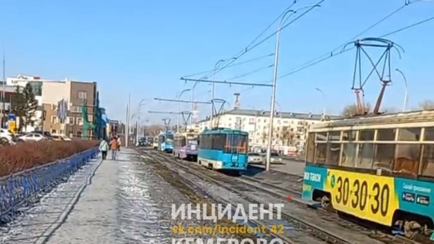 Пользователь местного сообщества "ВКонтакте" рассказал об инциденте, который произошел сегодня, 22 марта, на Кузнецком проспекте. По сообщению очевидца, по направлению к остановке "КЭМЗ" четыре трамвая встали в ряд.