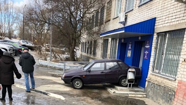 По его данным, автомобиль скатился задним ходом к крыльцу регистрационного подразделения ГИБДД, в котором выдаются водительские удостоверения и номерные знаки автомобилей.