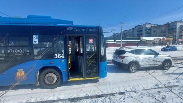 Троллейбус и иномарка столкнулись на МЖК в Чите