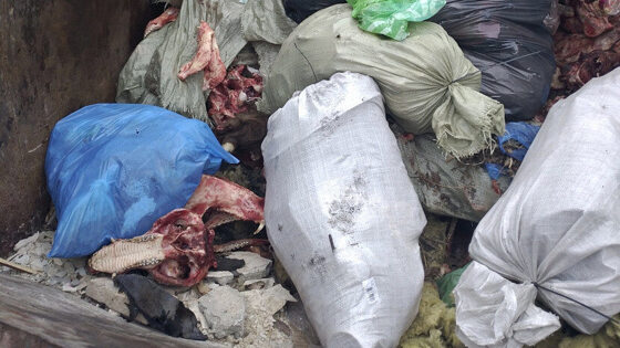 Саратовцы сообщили в соцсетях о странном инциденте, произошедшем на улице Огородной. В паблике «Саратов онлайн» появилось сообщение от анонимного очевидца, заснявшего костные останки в мусорном баке. Фото сделано возле моста на Кумысную поляну, в районе пересечения улиц Огородной и Ясельной. -22 марта, в районе часа приехали двое на машине и стали выгружать мешки с мясом, костями, тушками в обычный мусорный контейнер! На вопрос: «Зачем сюда выкидывать?» ответили: «Не доехали, сейчас позвоним, вывезут». И продолжили выкидывать. Сейчас это добро лежит и воняет, потом собаки растащат, — рассказал очевидец. Больше всего в этом инциденте саратовцев удивило наличие клыков на выброшенных черепах. Многие предположили, что это не сельскохозяйственные животные, а собаки.