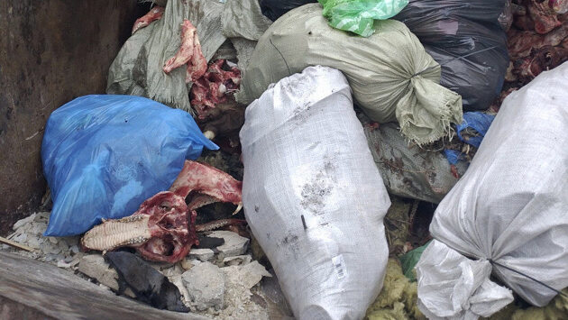 Саратовцы увидели черепа с клыками как у собак в мусорном контейнере