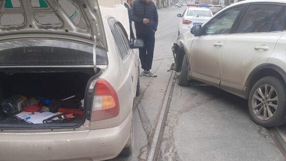 На Кутякова водители иномарок не поделили трамвайные рельсы и отправились в больницу