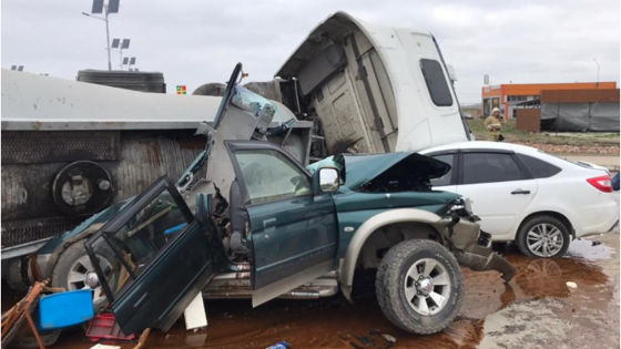На Кубани грузовик опрокинулся на две легковушки и убил одного водителя