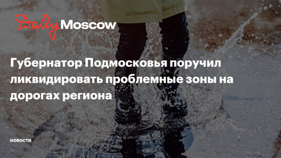 «Мы получили наказ жителей. Есть места традиционные, которые, к сожалению, долгое время заставляют людей чувствовать себя некомфортно. Я говорю о скоплении воды или луж, которые нужно оцифровать и найти мероприятия» Андрей Воробьев Губернатор Подмосковья