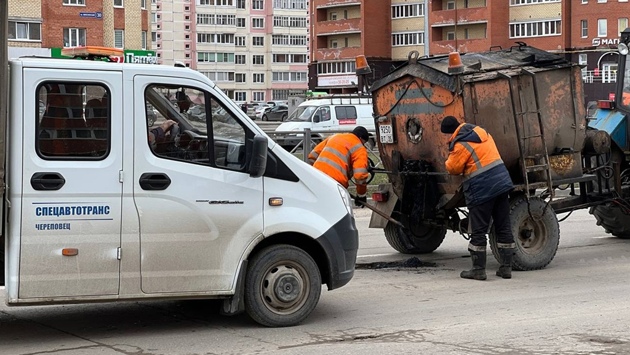 Мэр Череповца Вадим Германов рассказал, что при ямочном ремонте используют литой асфальт (нагретая смесь битума и крошки).
