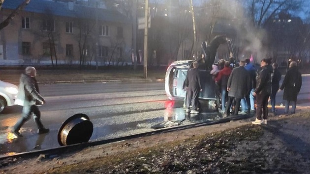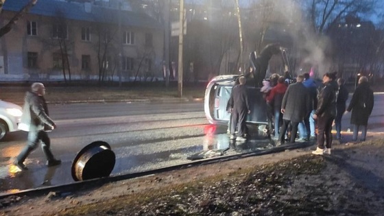 Машина перевернулась из-за наезда на поврежденный колодец в Нижнем Новгороде