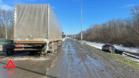 На трассе А-270 в Октябрьском районе водитель иномарки пострадал в аварии с большегрузом