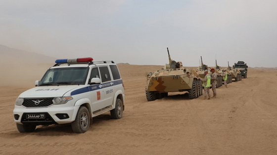 Автоинспекторы российской военной базы в Таджикистане сопроводили колонны военной техники, следующие на совместное двухстороннее учение