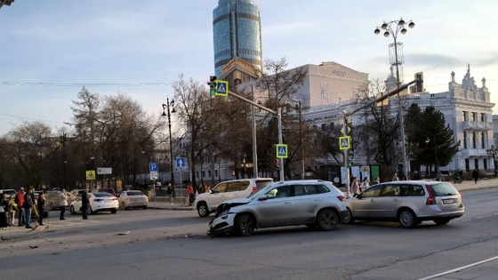 Авария на перекрестке проспекта Ленина и улицы Мамина-Сибиряка произошла после 18.00 со стороны театра "Урал Опера Балет". Там столкнулись белая Skoda и черный внедорожник Dodge Ram. В ГИБДД при этом сообщают, что участниками аварии стали не два, а три автомобиля.