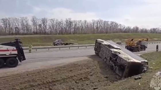 Авария произошла на 813-м км ФАД М-4 «Дон». Пассажирский автобус на маршруте Москва – Ставрополь ехал в южном направлении, водитель не справился с управлением, автомобиль опрокинулся.