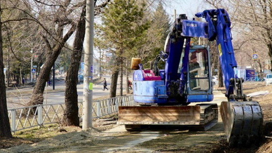 В Биробиджане начались работы по ремонту тротуаров. Сейчас они ведутся на Советской улице и проспекте 60-летия СССР. Демонтируют бордюры, снимают старое асфальтовое покрытие, при необходимости расширить тротуары — спиливают деревья.