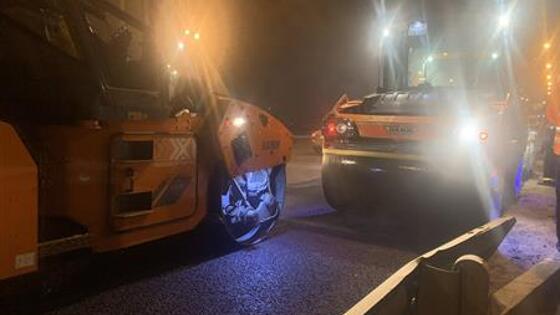 На путепроводе "Аврора" начали укладывать новое дорожное покрытие