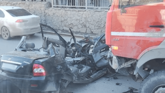 Судя по фото, опубликованным в социальных сетях, грузовик буквально смял легковушку. Некоторые из очевидцев утверждают, что самосвал мог двигаться на большой скорости.
