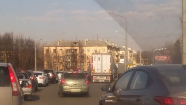 Фуры с сербскими номерами устроили пробку на путепроводе в Костроме