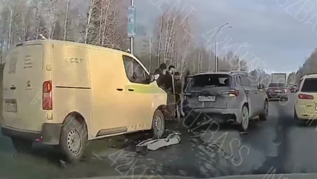 Автомобиль банка при ДТП также пострадал: на кадрах видно, что у него отсутствует передний бампер, а также поврежден капот.