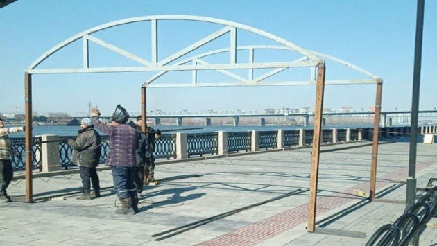 Сооружение из профлиста установят на нижнем ярусе набережной. Все остальное пространство под мостом будет закрыто для прохода, сообщают в подрядной организации. Перед Днем города еще одну крытую галерею шириной 3 метра установят на верхнем ярусе набережной.