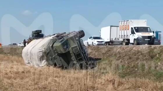 В сети появилось видео с перевернувшимся под Тулой зенитно-ракетным комплексом (ЗРК) С-400. Соответствующий ролик опубликовал Telegram-канал Mash.