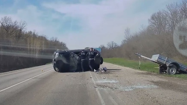 17 апреля в Воронежской области сотрудники Госавтоинспекции ОМВД России по Грибановскому району старшие лейтенанты полиции Сергей Уханов и Михаил Черкасов, находясь на маршруте патрулирования в районе 439-го км автодороги Р-298, заметили, что водитель иномарки с прицепом потерял управление, автомашина завиляла по проезжей части, а затем опрокинулась на бок. Полицейские незамедлительно поспешили к разбитой машине. Следом к ним подбежал ещё один мужчина, который также стал случайным свидетелем ДТП. Они помогли двум пострадавшим пассажиркам и водителю выбраться из искорёженного транспортного средства, двери которого по причине деформации кузова были заблокированы. Стражи правопорядка вызвали на место бригаду скорой медицинской помощи, а также оцепили данный участок дороги. Убедившись, что водитель, пассажиры и очевидцы аварии находятся на безопасном расстоянии, несмотря на риск для собственной жизни, во избежание возгорания повреждённого внедорожника полицейскими были отключены источники электропитания в транспортном средстве. Прибывшие на место происшествия медики доставили пассажирок 61 года и 30 лет в медицинское учреждение. Врачи оказали женщинам необходимую помощь и отпустили. 68-летний водитель транспортного средства в аварии не пострадал. С его слов, он вместе с супругой и женой сына ехал домой в город Новохоперск из города Борисоглебска, когда внезапно потерял управление транспортным средством. В настоящее время по факту ДТП проводится проверка, устанавливаются все обстоятельства произошедшего.
