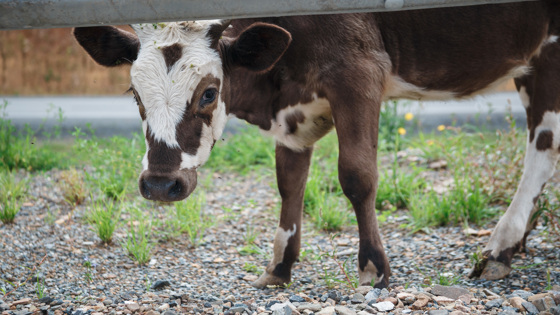 Корова ушла с пастбища и сбилась с пути. От удара животное пролетело 30 метров.