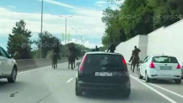 Движение по трассе "Джубга - Сочи" вынужденно остановилось после того, как на проезжую часть выехали пять наездников на лошадях. Об этом сообщает Telegram-канал "ЧП Сочи". На кадрах, снятых из автомобиля, видно, что всадники рассредоточились по всей ширине проезжей части, из-за чего автомобилисты были вынуждены снизить скорость до минимума. После того, как наездники сместились в правую полосу дороги, их попытался объехать слева водитель Mini Clubman. Однако он не смог этого сделать, потому что один из коней рванулся перед ним в левый ряд. Также водители были вынуждены объезжать наездников по полосе, предназначенной для общественного транспорта. Ранее стало известно, что в Никарагуа шесть пассажиров автобуса погибли в результате ДТП и последовавшей за ним атаки африканских медоносных пчел.