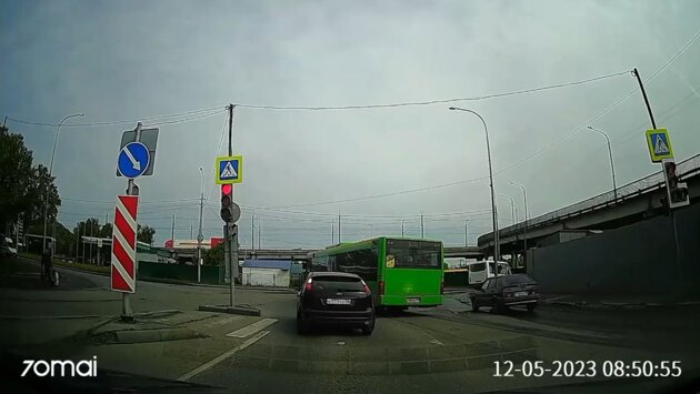 Утром в пятницу, 12 мая, в Пензе камера видеорегистратора на автомобиле запечатлела «массовый заезд» транспорта на запрещающий сигнал светофора.