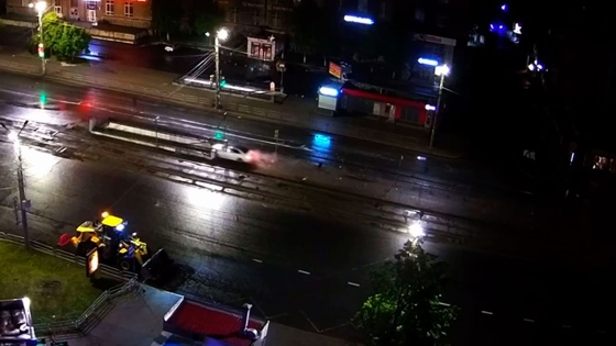 На кадрах видно, как машина несется по выделенной линии, из-под колес летят искры, и через несколько секунд автомобиль «ныряет» в подземный переход.