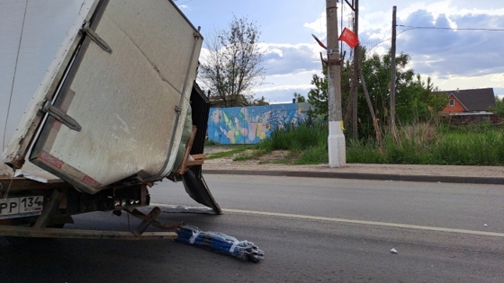 Днем в субботу, 13 мая, в Кировском районе Волгограда возле остановки общественного транспорта «9-я больница» произошло ДТП. КамАЗ врезался в грузовик. От удара у того деформировался кузов и открылись двери, груз выпал на проезжую часть.