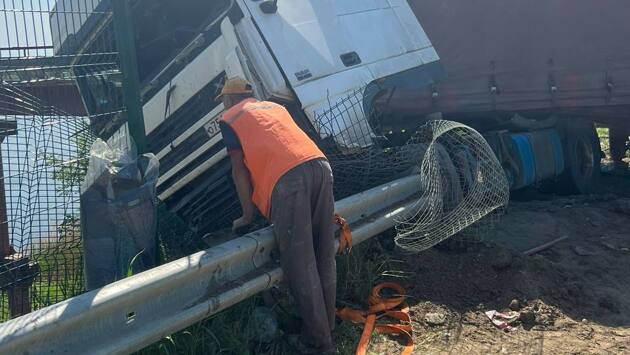 Фура врезалась в металлическое ограждение на мосту в Каменске