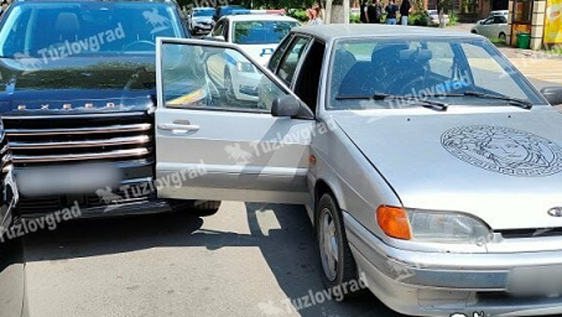 В этот же момент водитель ВАЗ-2114 решил сдать назад с открытой передней дверцей со стороны пассажира. Ею он и зацепил иномарку звездного гостя донского края.