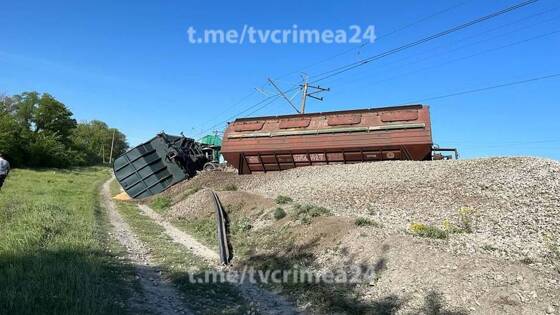 Взрыв железнодорожного полотна в Симферопольском районе Крыма произошел 18 мая около 8:20 утра. В результате ЧП с рельс сошли пять вагонов с зерном. Повреждено 50 метров полотна, диаметр воронки под рельсами составляет 15 метров, глубина — 2 метра.