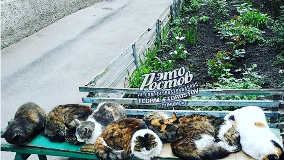Ростовская область, 18 мая 2023. DON24.RU. Восторг подписчиков паблика «Это Ростов» вызвал снимок дремлющих на скамейке кошек. «Сонное кошачье царство в Александровке», — пояснил автор поста. За два часа снимок собрал около 150 отметок «нравится». «Котоферма», «Как в автомобиле есть предварительный прогрев двигателя, так и у бабушек своя фича», «А можно присоединиться?» — прокомментировали горожане. Другие решили, что животные напоминают пенсионерок, которые вышли подышать свежим воздухом и пообщаться. «Бабули в облике кошек», «Бабушки освоили навык профессора Макгонагалл», — написали пользователи.